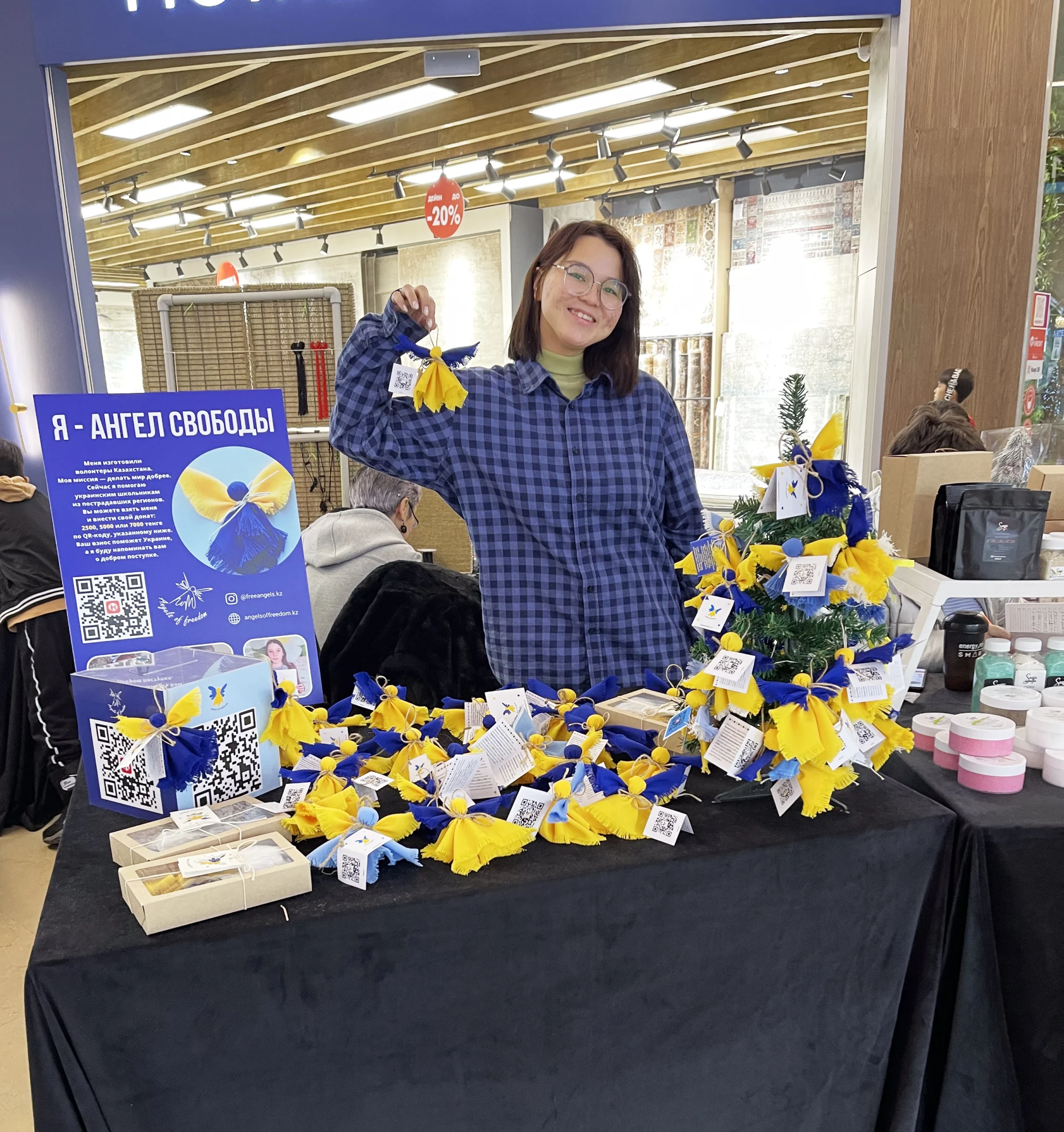 — Да, в ноябре на первой крупной толоке в Алматы я сделала своих первых ангелов. Это действительно классно, потому что это какой-то такой процесс… немножко умиротворяющий, учитывая, что там собираются абсолютно разные люди, и вы там разговариваете, находите какие-то общие темы. И да, я сама лично продавала их [ангелов], потому что я координатор «Ангелов Свободы» в Алматы. То есть не только находила, где мы будем проводить ярмарки, но и готовила те же бирочки, плакаты, сама стояла на ярмарках и рассказывала людям о проекте.